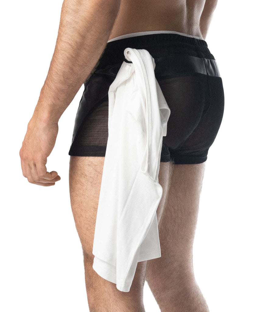 Designed for airflow and attitude, the Intake Trunk Short pairs soft mesh with sharp faux-leather side panels for structure and edge. A rear shirt loop keeps your top secure once things get sweaty. Lightweight, easy, and built for the moment you stop pretending you’re keeping it PG.