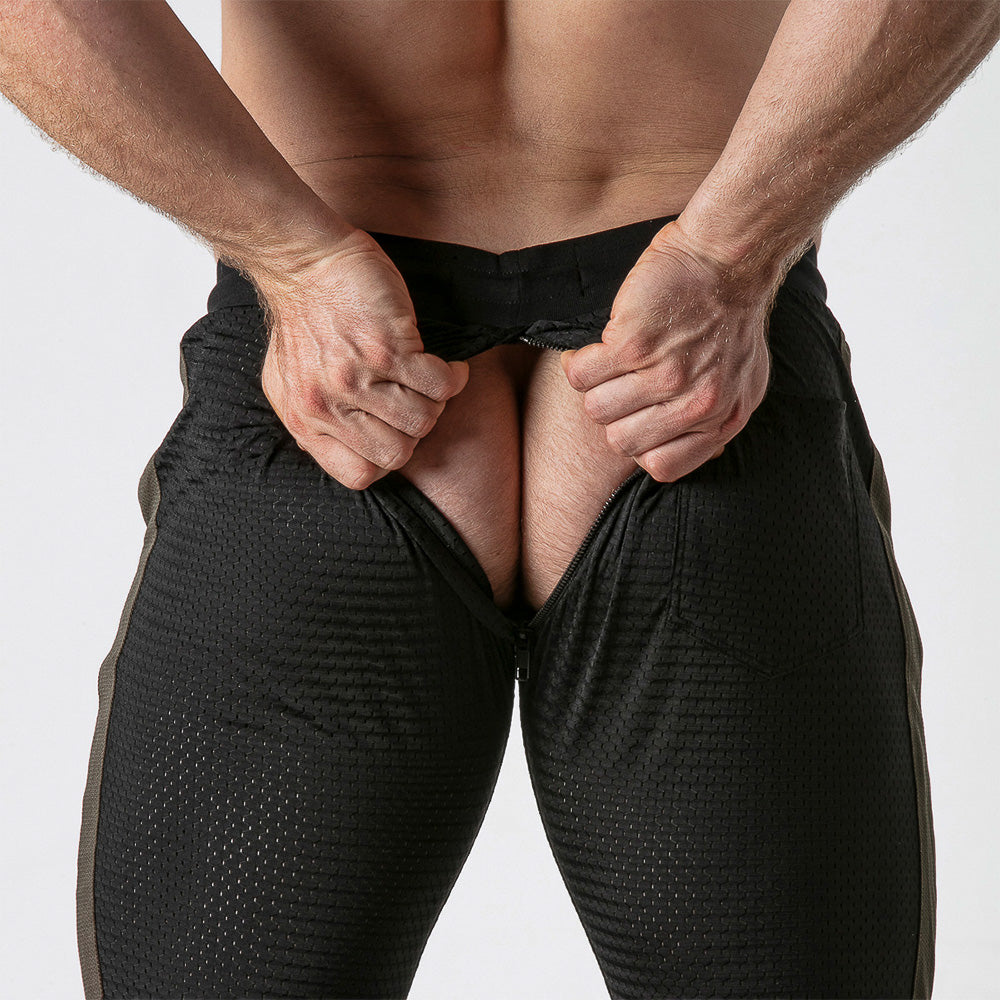 Jogger with hidden back zipper opening made of the finest breathable mesh fabric.