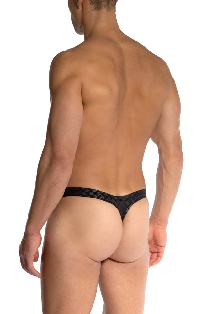 Visually striking abstract glossy textile look created by embossing print on lightweight Oeko-Tex certified microfiber with an embossed logo waistband.
